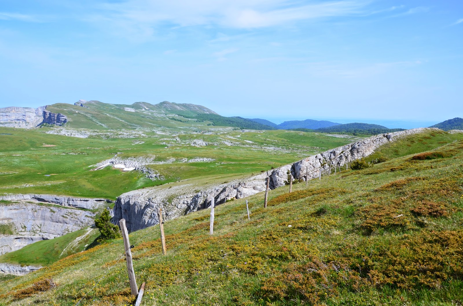 Vue sur le plateau d'Ambel et le Roc de Toulau