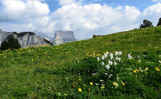 Du bord des falaises, la vue est saisissante sur le Mont Aiguille.